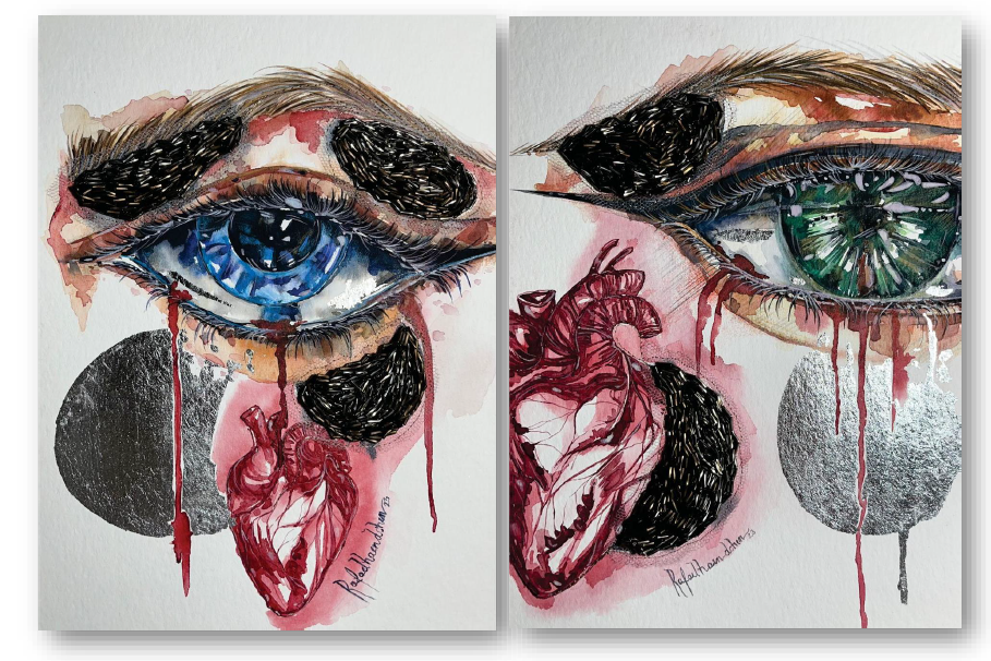 Com uma estética singular que transita entre o figurativo, o abstrato e as formas orgânicas, Rafael explora cores vibrantes, pinceladas soltas e tonalidades que escorrem com leveza e emoção. Seu trabalho se aprofunda no conceito de “Pintura Bordada” — técnica autoral que une arte e moda, fundindo aquarela, bordado e expressão visual contemporânea. Suas criações propõem não apenas uma imagem pictórica agradável, mas uma experiência sensível, carregada de emoção, memória e identidade.