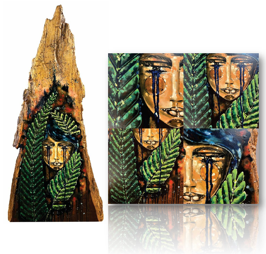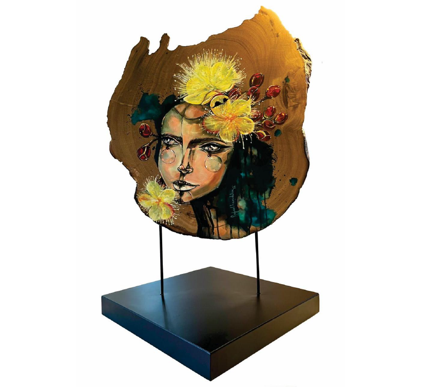 Técnica: Acrílico sobre Madeira Raiz de Ipê Champagne